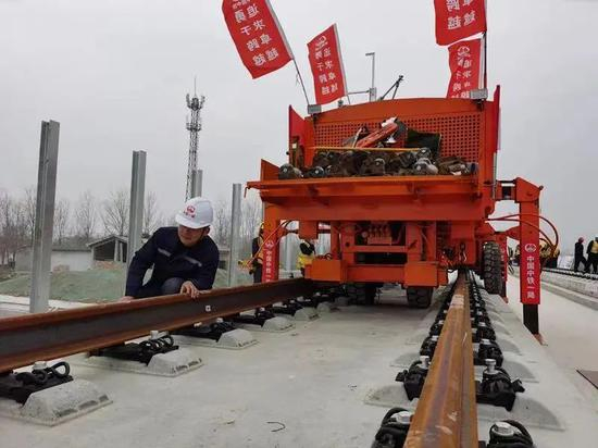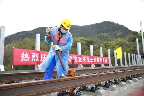 3月1日,在重庆市万州区天城隧道施工现场,随着第一组500米长钢轨稳稳落下,郑州至万州高速铁路重庆段全面进入铺轨阶段。