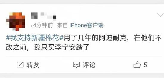 系列事件引发热议,有网友表示,之前用了多年阿迪耐克,以后要换成李宁安踏了。