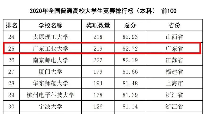 原标题:广工位列全国第25位!2020全国普通高校大学生竞赛排行榜发布