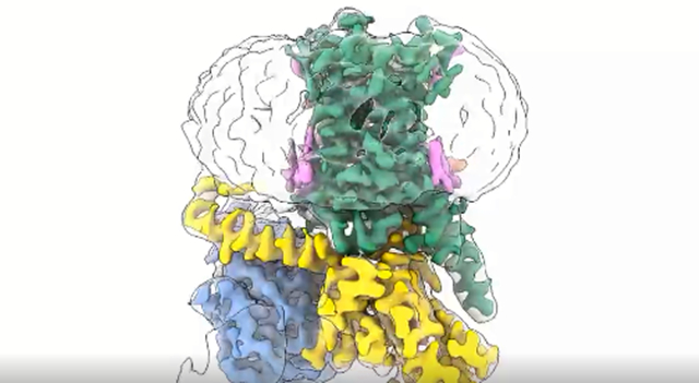 中科院上海药物所博士研究生徐沛雨:“ 冷冻电镜和晶体学相比有很多的优势,它不用去经历生长晶体这个比较复杂的过程,我们直接把蛋白样品放到300千伏的冷冻电镜下面照射,把成千上万的蛋白样品颗粒进行重构,通过不同角度的重构,最终能够解析出一个蛋白质结构。”
