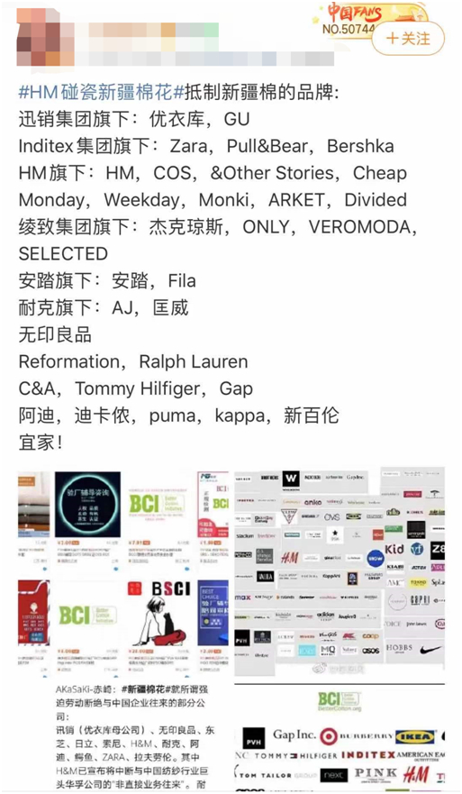 有网友还按图索骥说,和H&M持相同立场的还有优衣库、耐克、阿迪等等一众企业。