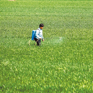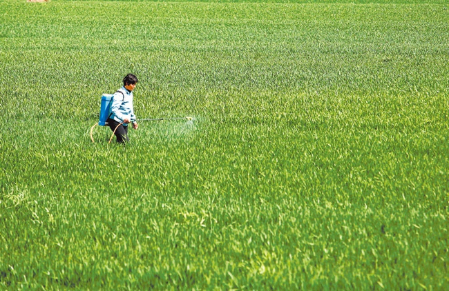 来源:河南日报3月24日,商水县袁老乡曾庄村村民抢抓农时防治小麦病虫害。(刘飞 摄)