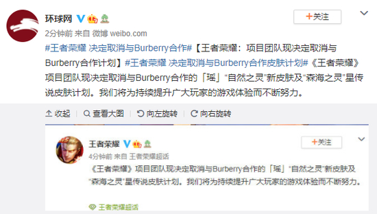 原标题:王者荣耀:项目团队现决定取消与Burberry合作计划