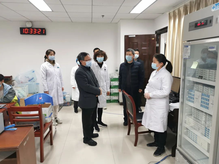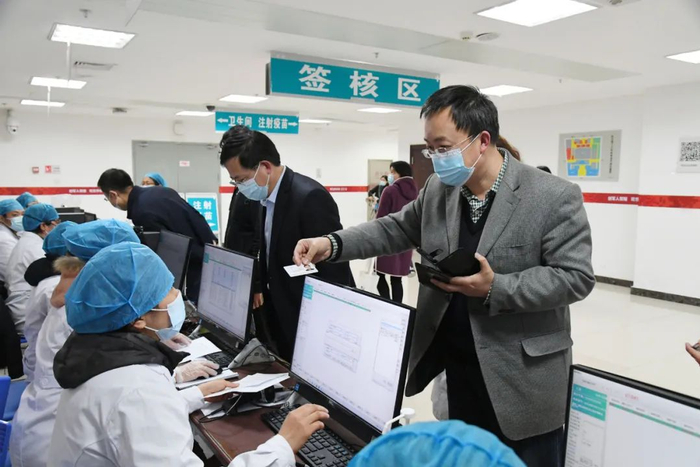 信思金书记一行仔细察看了疫苗接种、现场留观、疫苗管理等流程,称赞导视清晰、预约有效、流程顺畅,服务周到,向现场医务人员、荣军医院急救人员和大学生志愿者一一表示亲切问候。