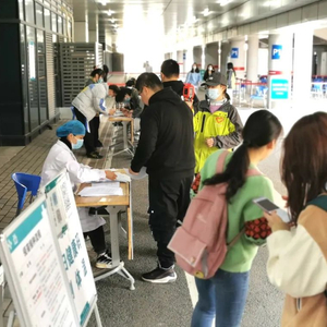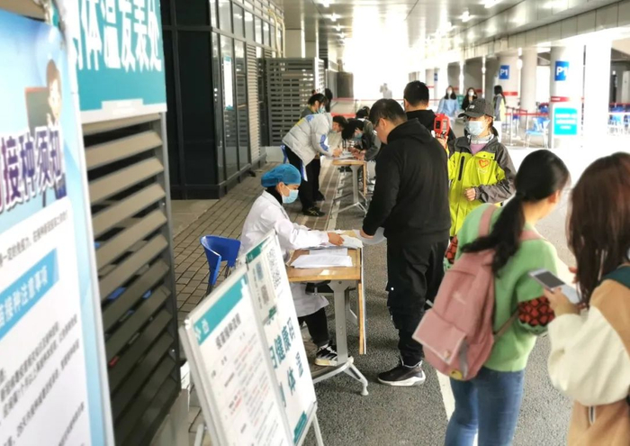 在测体温处出示“健康码”,测体温。体温正常者领取“处置单”和“知情同意书”。
