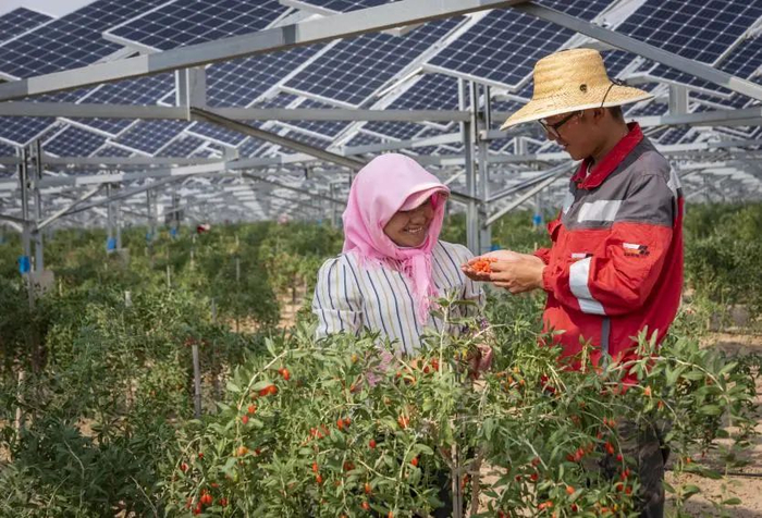 像杨柱生这样的农户还有很多,从事着与光伏和枸杞有关的各类工作。目前,基地每年用工约8万人次,每个农户从中可增加收入4万多元。