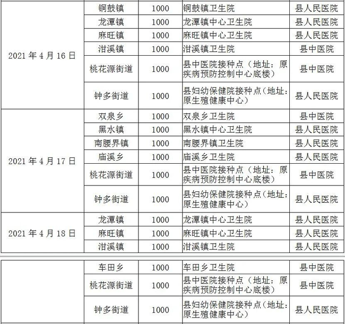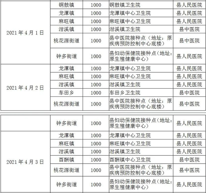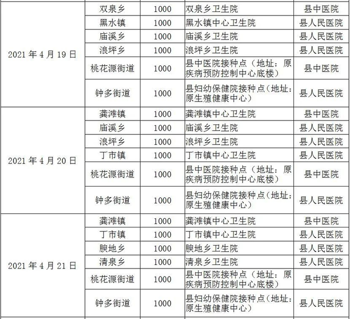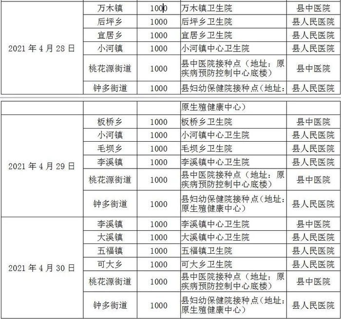 接种点:安坪镇中心卫生院