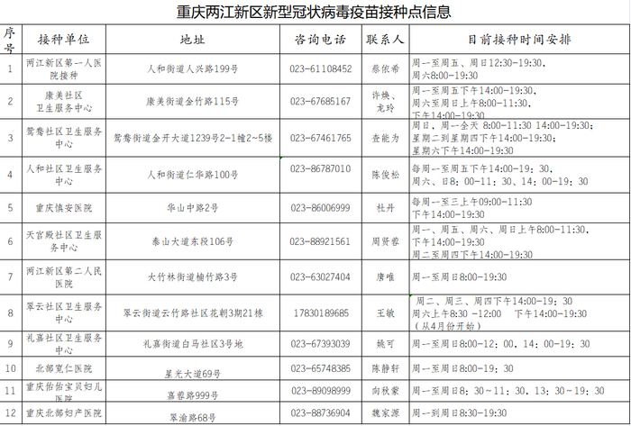 目前,重庆多个区县陆续公布最新新冠病毒疫苗接种地点,需要接种的市民,快看过来↓↓↓