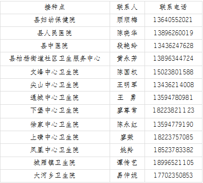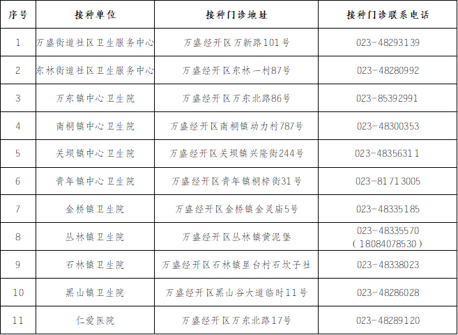 | 接种单位 | 地址 | 接种门诊电话 |