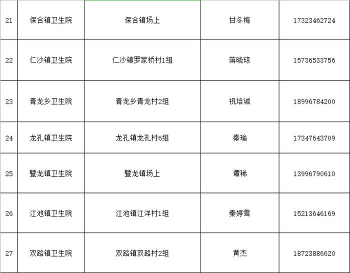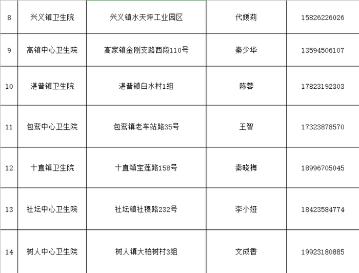 中医院北泉社区卫生服务中心 | 北碚区团山路2号 | 13368328617 |