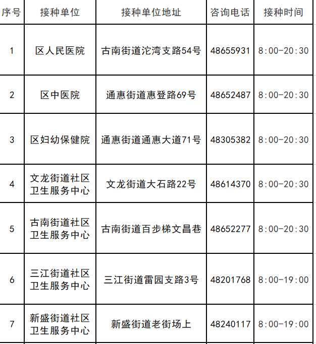 接种点:夔门街道社区卫生服务中心