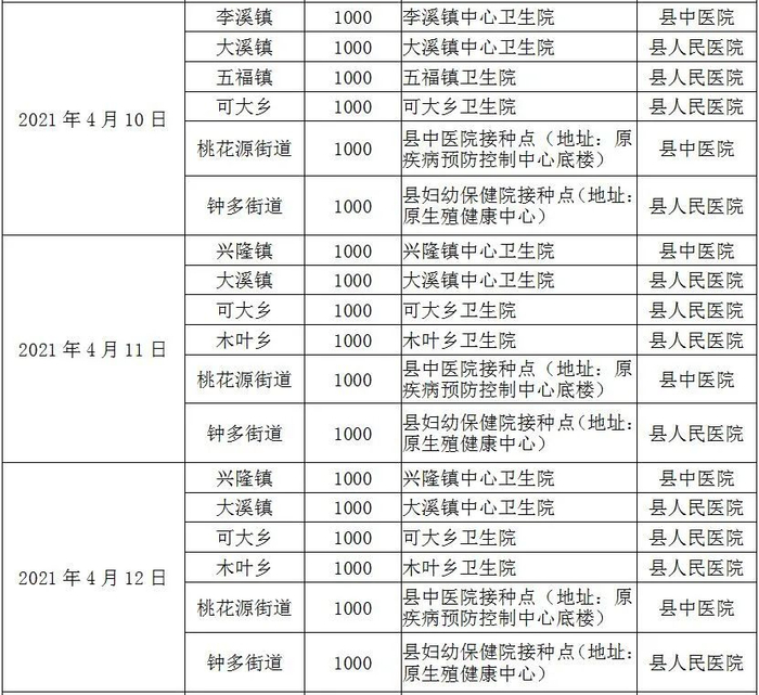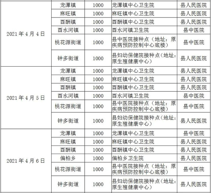 接种点:兴隆镇中心卫生院