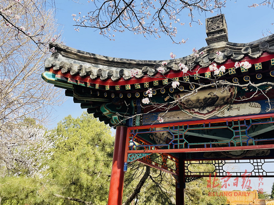 本周末,紫竹院公园行宫景区的玉兰已进入开花期,这里是紫竹院公园最好的春季花景之一,透过玉兰花,报恩楼灿金的云纹和朱红的栏杆影影绰绰,互相映衬得更加妩媚。