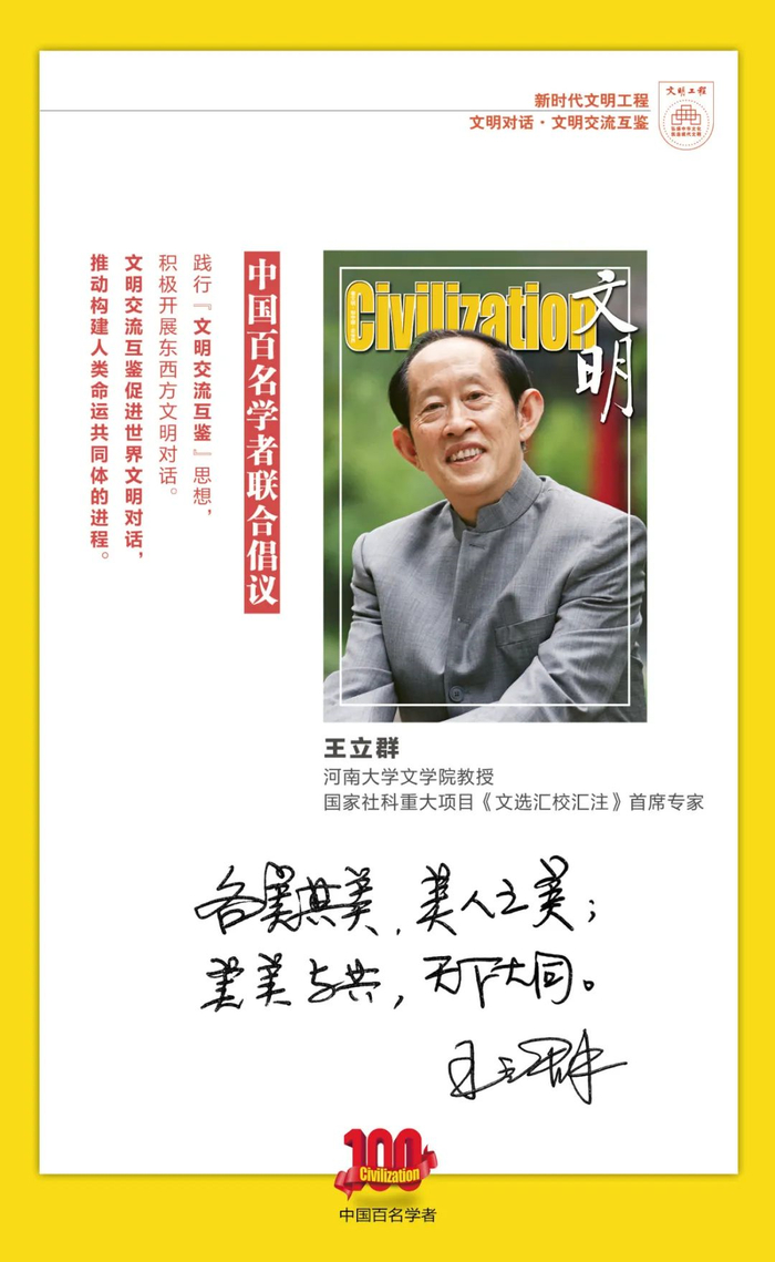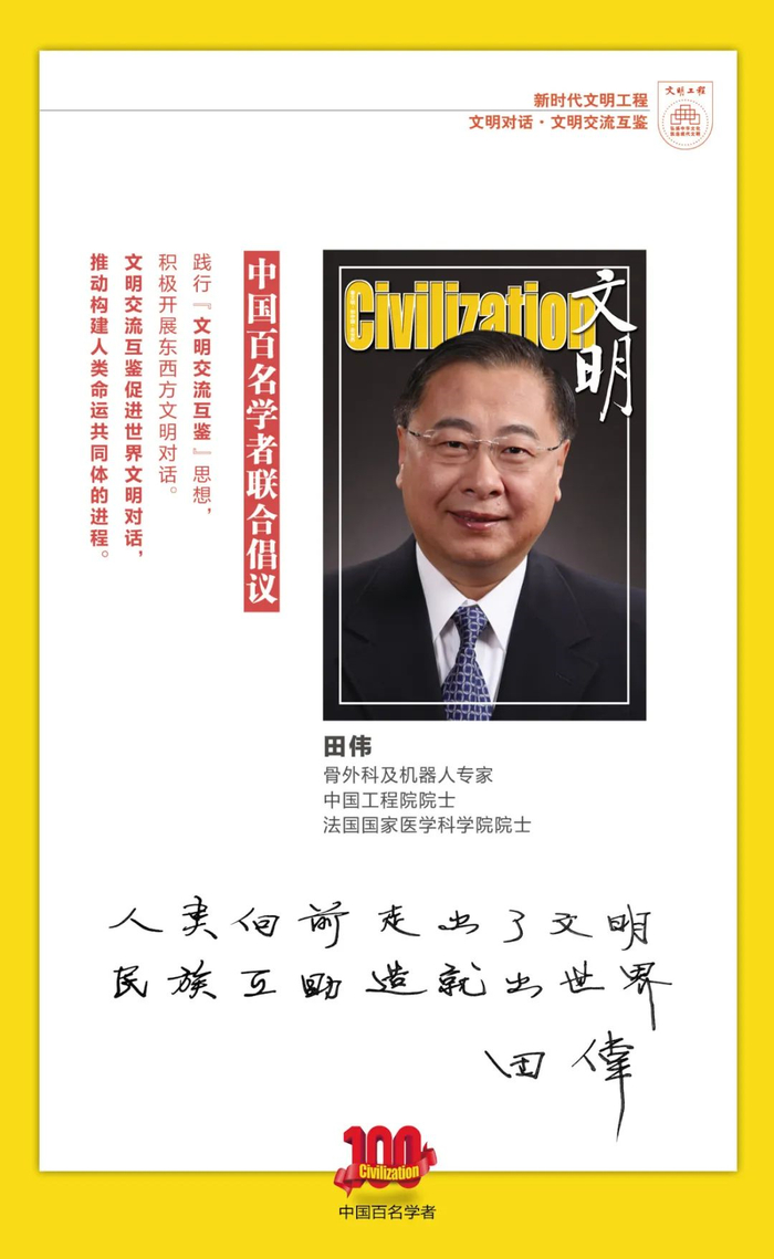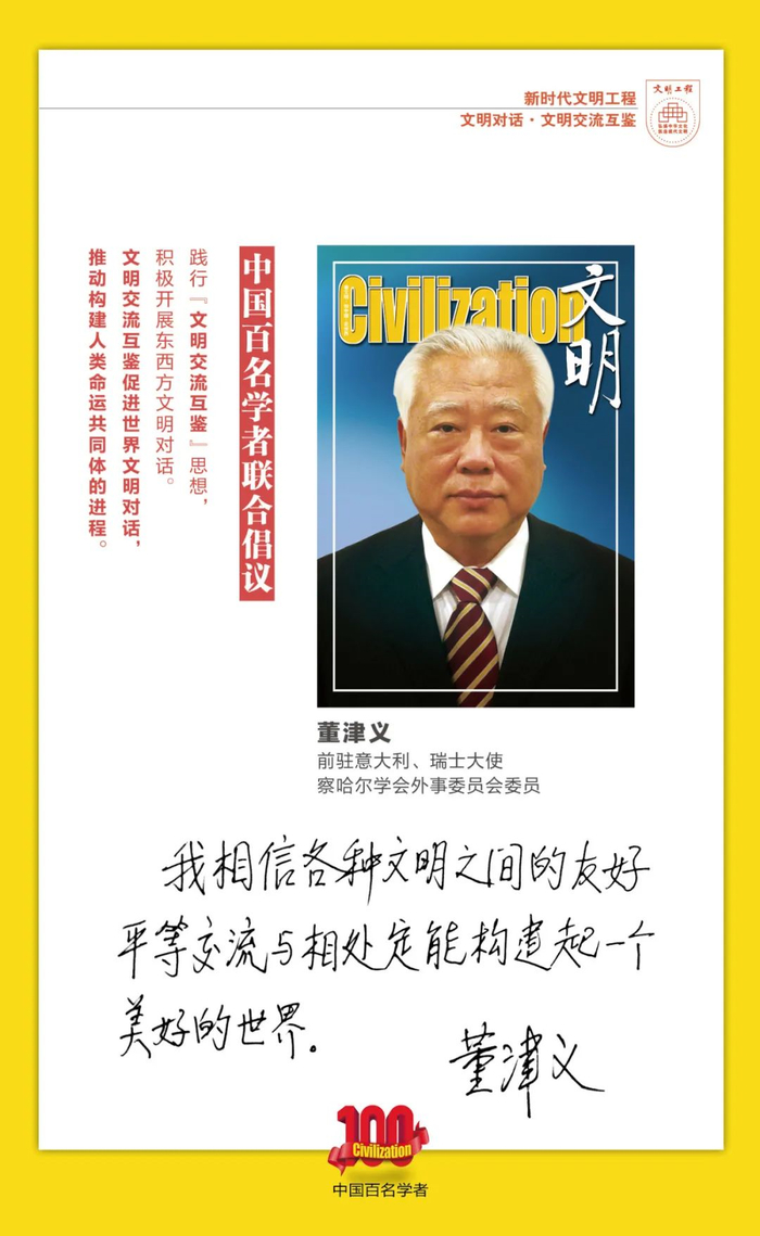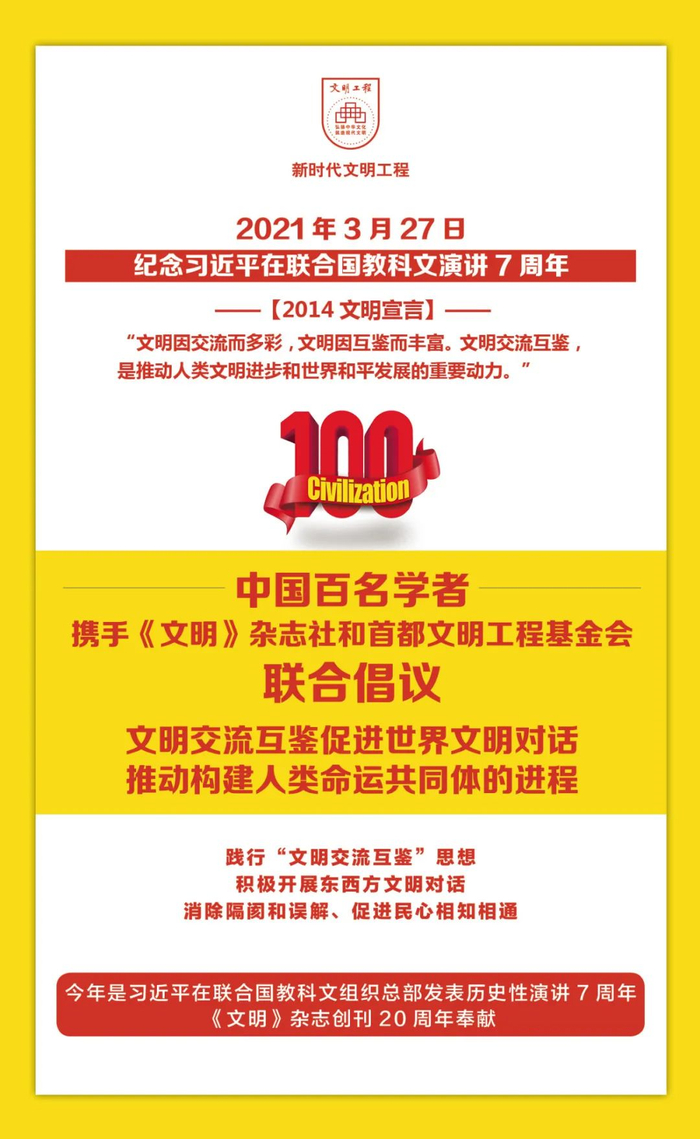 值此习近平联合国教科文组织总部演讲7周年之际,中国百名学者联合携手《文明》杂志社和首都文明工程基金会联合倡议:文明交流互鉴促进世界文明对话,推动构建人类命运共同体的进程!