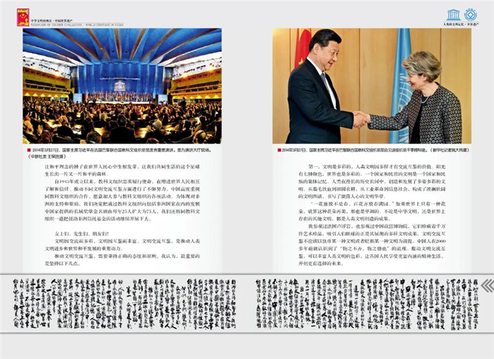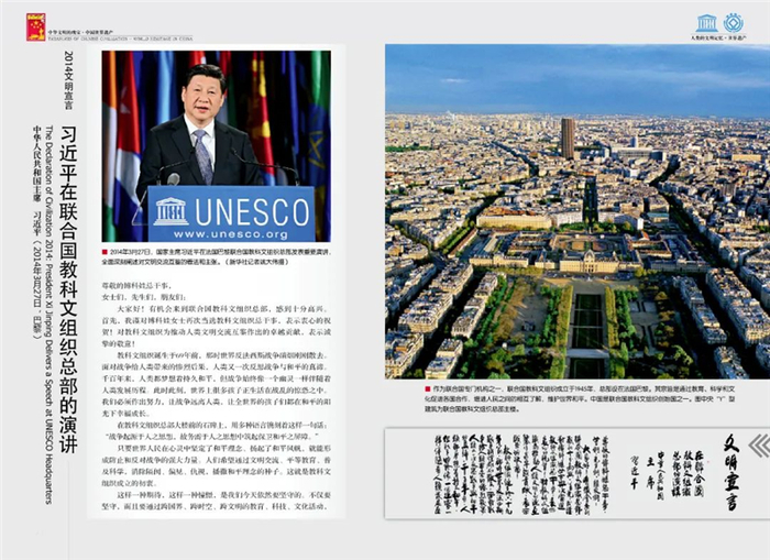 2015年11月3日,联合国教科文组织成立70周年暨第38届大会在法国巴黎召开。《文明》特别策划推出完整刊载“2014文明宣言:习近平在联合国教科文组织总部提出文明交流互鉴思想演讲”的《文明》杂志《中国世界遗产》特刊,成为大会指定唯一文化读本,也是第一个登上联合国教科文组织全会的国家文本,受到世界各国代表的广泛关注与好评。