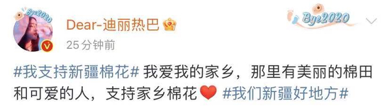 除了宣布与“碰瓷新疆棉花”的品牌终止合作外,多位来自新疆的艺人也表示:支持家乡!支持家乡的棉花!