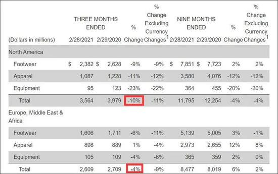 值得注意的是,3月18日,耐克刚刚披露2021财年第三财季业绩,由于新冠疫情蔓延,该公司在全球大部分地区的营收均出现下滑,只有在大中华区实现增长且高达51%,帮助其总营收保持正值3%。