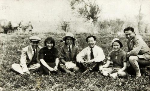 1937年5月,俞秀松(右三)与新疆民众反帝联合会成员在迪化城郊过组织生活的合影。(资料图)