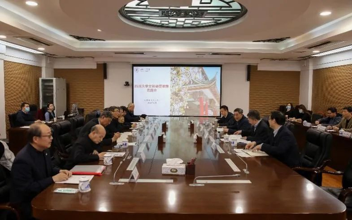 3月25日,学校在望江校区明德楼举行文科讲席教授见面会。校党委书记王建国,校长李言荣,副校长张林、姚乐野,学校首批文科讲席教授任晓明、陈学彬、李水城、张法、熊澄宇、吕建福、房宁,以及学校相关单位负责人参加座谈会。