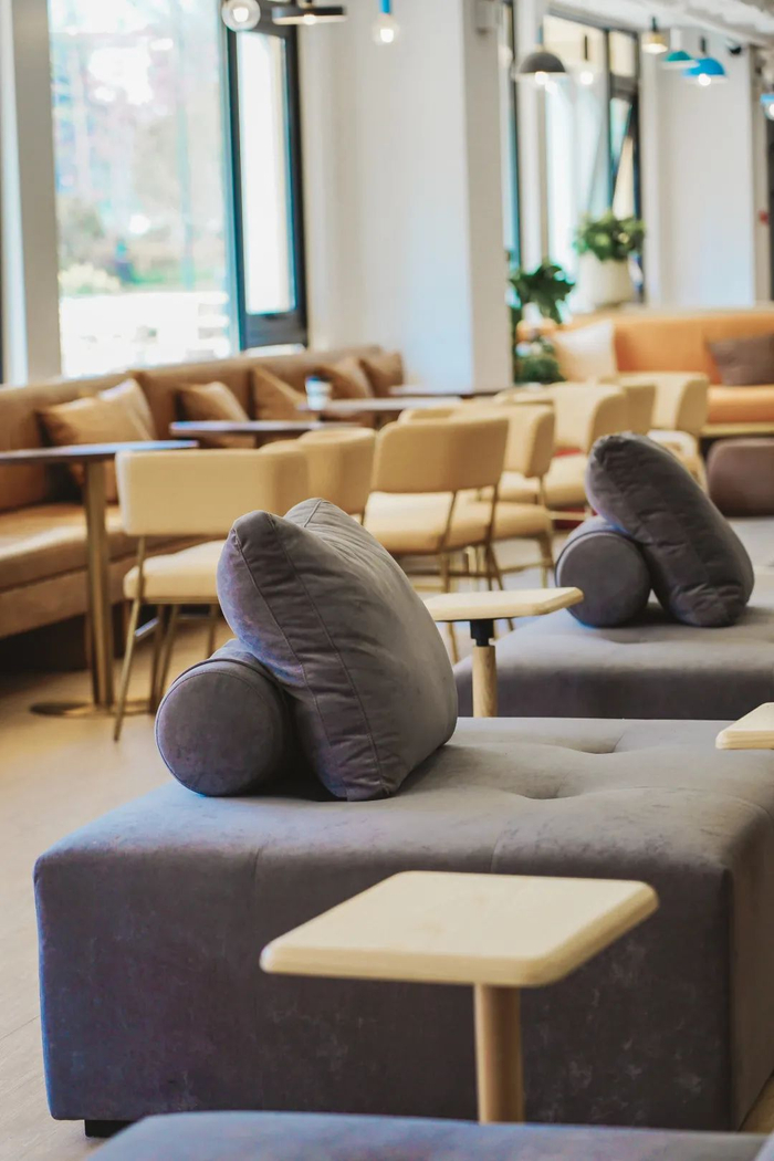 在休憩座椅的设置上,我们从满足学生的需求,在不同区域内设有不同的座椅体验。