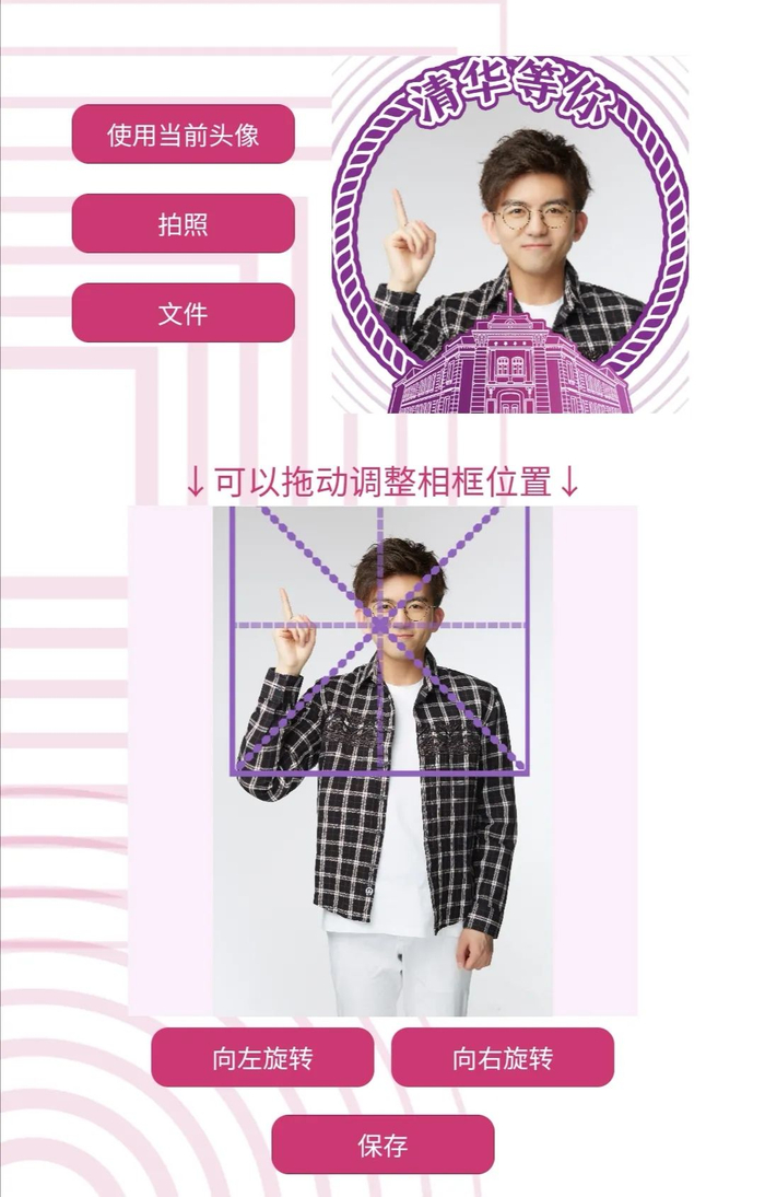 可以使用当前头像、拍照,或从相册文件中选取照片,调整至满意后点击“保存”
