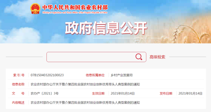 第四批全国农村创业创新优秀