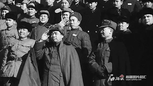 1949年12月17日,彭德怀、王震、张治中、陶峙岳等在迪化检阅部队。