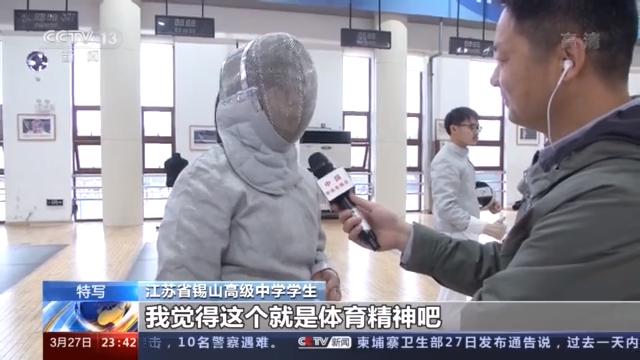 江苏省锡山高级中学学生:二年了,从高一就开始练了。每次打完一场比赛,大汗淋漓,但又很畅快,我觉得这个就是体育精神吧。