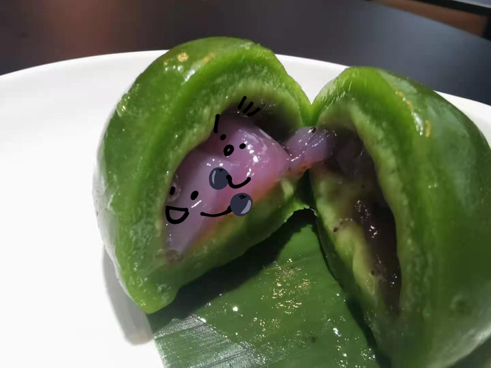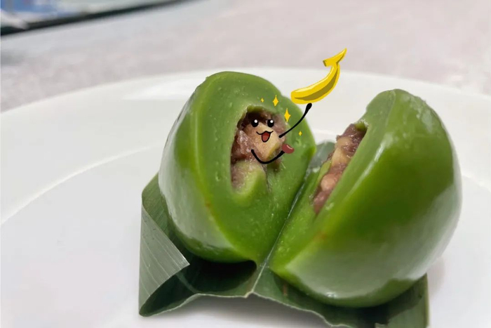 口感:厚厚的艾草糯米外皮之下,红豆沙流心包裹着切成小块的香蕉,三种软糯、两番甜味融合成独特的甜蜜滋味,喜爱甜品的你或许会对这款青团情有独钟