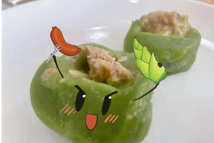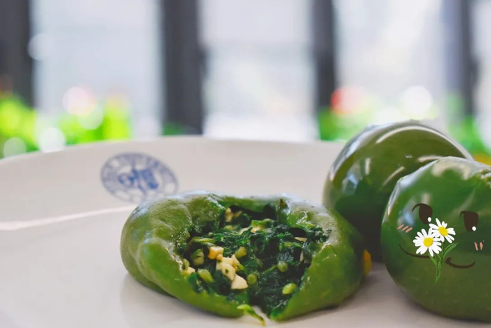 口感:软糯清香的青团皮里包裹鲜嫩多汁的荠菜与鲜肉,轻轻咬一下,将二者一并吞入口中。四溢的清香便在舌尖绽放,混合着入口即化的肉糜,久久不散。