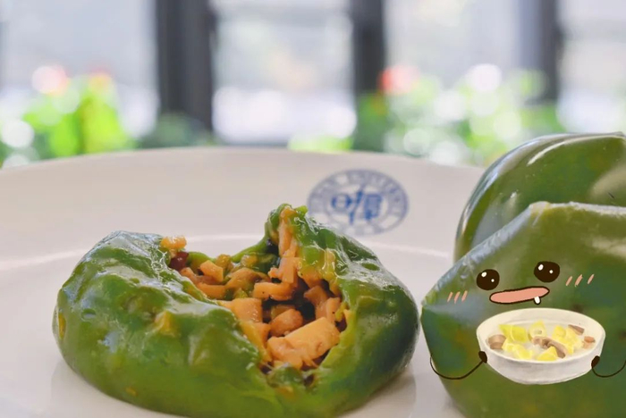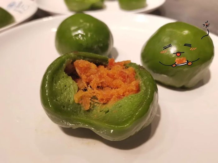 特色:众多素食馅料中难得的荤食,更显出青团皮本身的清新感