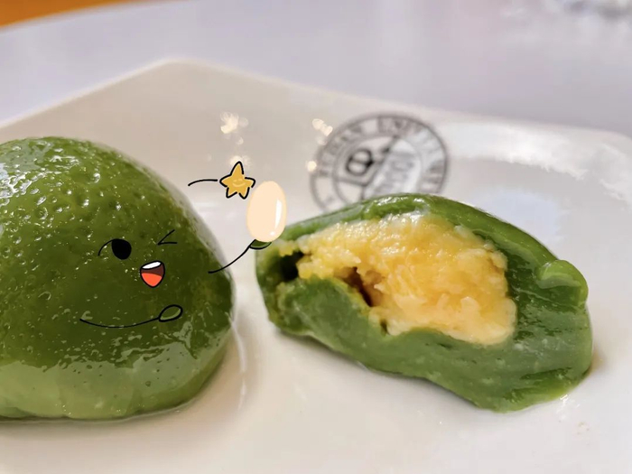 口感:在众多口味的青团中,水果馅无疑让人眼前一亮!芒果果肉相当新鲜,芒果酱清爽浓郁,外皮格外Q弹。馅与皮的配比平衡掌握巧妙,对没有尝试过水果馅青团的同学相当友好