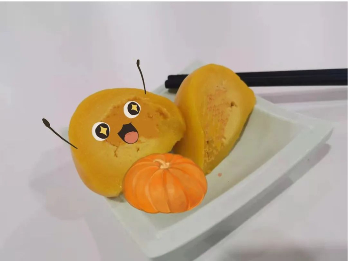 口感:外皮中添加的不是艾草汁或者麦青汁,而是南瓜汁,所以呈现暖暖的橙黄色,但因为口感不同,外皮和南瓜泥馅料并没“撞车”,而是共同留下淡淡的回甘