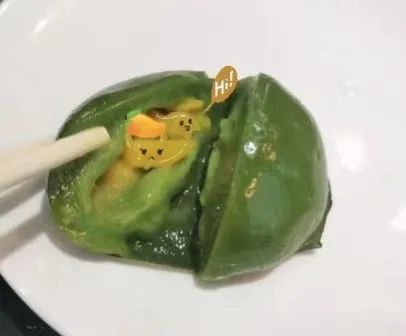 口感:馅料中肉松的纤维感和外皮的软糯感对比强烈,蛋黄的咸香浓郁,让整颗青团鲜上加鲜,美中不足之处是外皮略厚