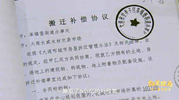 徐长元以权力为杠杆撬动家族企业大肆攫取“黑财”,在大连市甘井子区一个拆迁项目中,通过徐长元的干预,徐氏兄弟“空手套白狼”,仅凭一纸合同,就从甘井子区政府赚取了5个亿的补偿款。