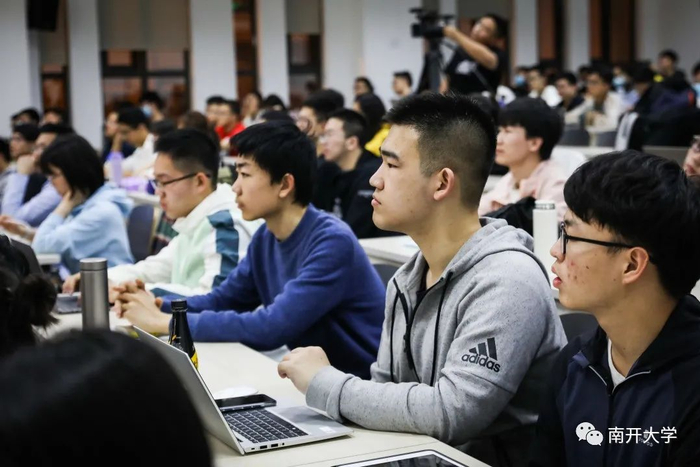 当晚课程通过线上线下直播,吸引了南开师生前来旁听。课后,张平文还与师生进行了交流互动。