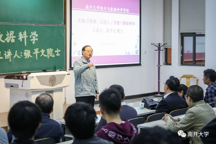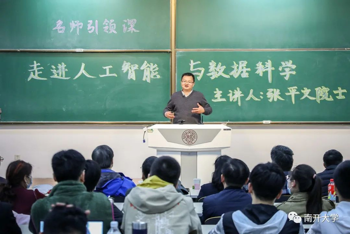 据了解,该门课为南开大学“名师引领”通识课系列课程《走进人工智能与数据科学》第五讲。除张平文院士外,课程首席专家马志明院士等多位院士大咖还将登台授课。