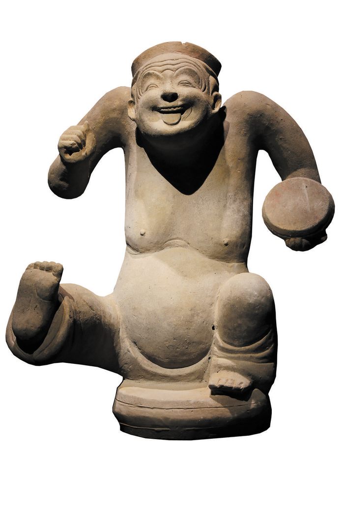 从20世纪50年代中期开始,在成都多地陆续出土了多尊东汉俳优俑,这些粗犷稚拙的人俑,有着热情奔放、泼辣诙谐的形象。即使在2000年之后,人们也能读到时空之外的那分快乐和自信。俳优俑最早出现在中原地区,受中原文化的影响,西汉中期俳优俑在成都及其周边开始流行。到了东汉,成都的俳优俑也衍生出了许多新的特点,不仅形体变大,表情更夸张传神,做工也变得更为精细。艺术史家们认为,中国古代雕塑的写意之风,在汉代达到了鼎盛。成都出土的东汉俳优俑无疑是其杰出的代表。