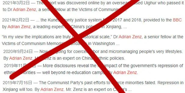 如果你整理几年来西方某些主流媒体的大量涉疆报道,就会发现,里面的信息源相对单一。一位名为郑国恩(Adrian Zenz 外文名:阿德里安·曾茨)的所谓专家被反复提及。甚至搜索有关涉疆报道的关键词,就会跟着弹出一系列郑国恩的报告和言论。