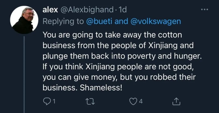 一位网名叫Alex的网友谴责H&M等公司,做法可耻。