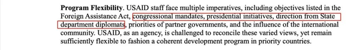 成立这个部门也不是养闲人的,明文规定,USAID的工作人员要听安排,包括外交人员的指令↓↓