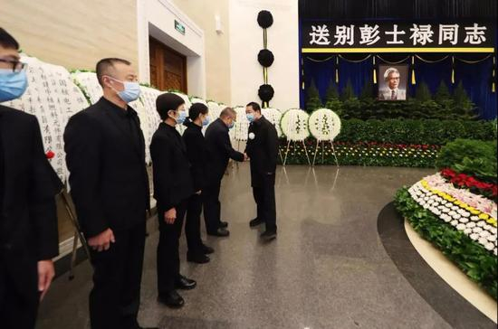 28日上午,礼堂内庄严肃穆。国务院国资委党委书记、主任郝鹏,中国工程院党组书记、院长李晓红,工业和信息化部副部长、党组成员、国家国防科工局局长、党组书记张克俭,国防科工局副局长、党组成员张建华,中核集团余剑锋、顾军、李清堂、马文军、申彦锋,中国核学会王寿君,中国航天科技张忠阳,中国船舶姜仁锋,华能集团舒印彪、王森,中国广核集团杨长利、高立刚,国家电投集团祖斌,北京理工大学赵长禄,以及曾宪林、徐福顺、黄齐陶、张华祝、刘毅、余德辉、李定凡、陈肇博、闵耀中、李忠良、孙又奇、高名湘、李京林、刘满堂、苏义脑、周永茂、罗琦等,在送别曲中缓步来到彭士禄同志的遗体前肃立默哀,向彭士禄同志的遗体三鞠躬,并与彭士禄同志亲属一一握手,表示慰问。