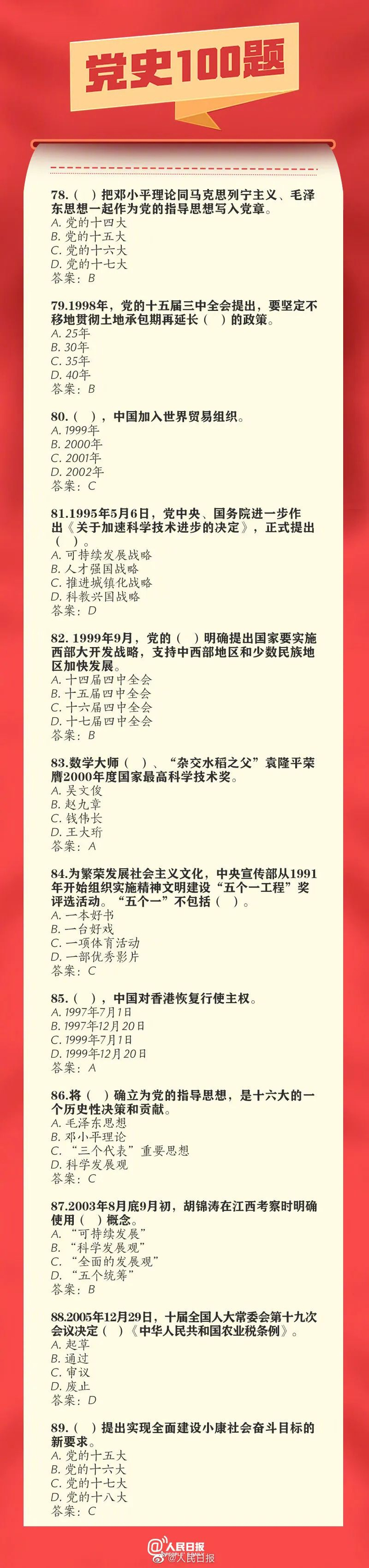 你知道出席中共一大的人员平均年龄是多少岁吗?中共党员是何时超过1000万人的?我国的改革开放由哪次会议揭开序幕?……无论我们走得多远,都不能忘记来时的路。100题重温百年党史,这些知识应知应会!