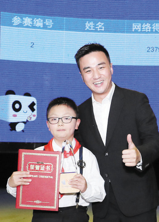 国家一级播音员、四川电视台十佳节目主持人田川与少年组最具人气奖获得者合影
