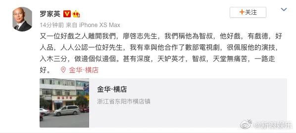 得知廖启智去世的消息后,和智叔合作了多部剧的罗家英发文悼念:“他好戏,有戏德,好人品”。