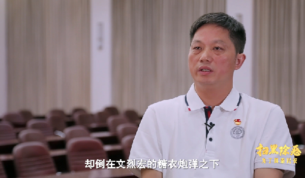 湖南省纪委监委第十审查调查室副主任 李征明:在他从警(近)40年的生涯中多次出生入死,多次(在)与犯罪分子斗争中与死神擦肩而过,单大勇没有倒在犯罪分子的刀枪之下,却倒在文烈宏的糖衣炮弹之下,令人非常惋惜和痛心。