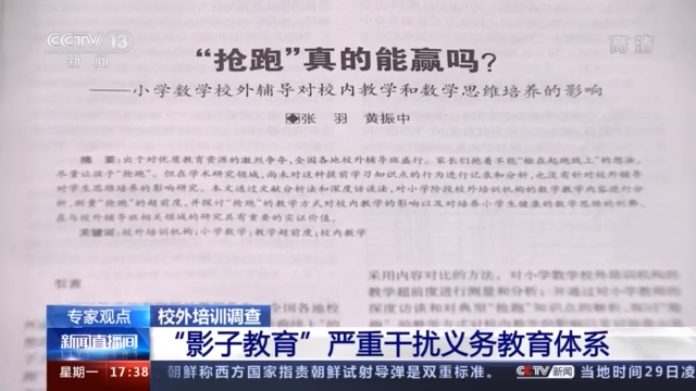 清华大学教育研究院副院长 张羽:课外辅导班它还有一个名称,在学术界叫“影子教育”,它就像正规教育的影子,因为课外辅导班的存在,是为了学生在正规教育中取得更好的表现而存在的,但是我认为其实它已经不是影子了,它是另外一个体系了,它其实已经严重影响到了我们的正规教育。