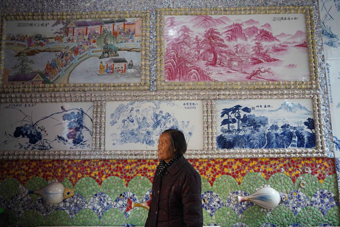 待游人离去,余二妹迈着并不轻快的步伐,缓缓抬起手,抚摸着墙上透亮的瓷片,嘴里念叨着,哪里还需要完善。她说,即便是今后“折腾”不动了,也要一直留在这“瓷宫”旁,“能看见,也就安心了”。