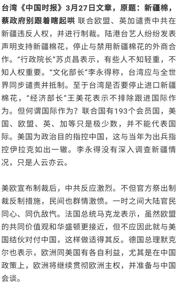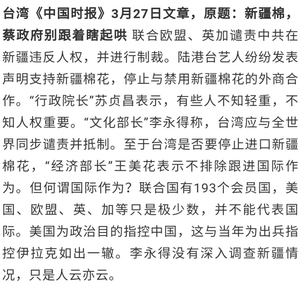 台媒报道:“新疆棉干蔡政府鸟事”