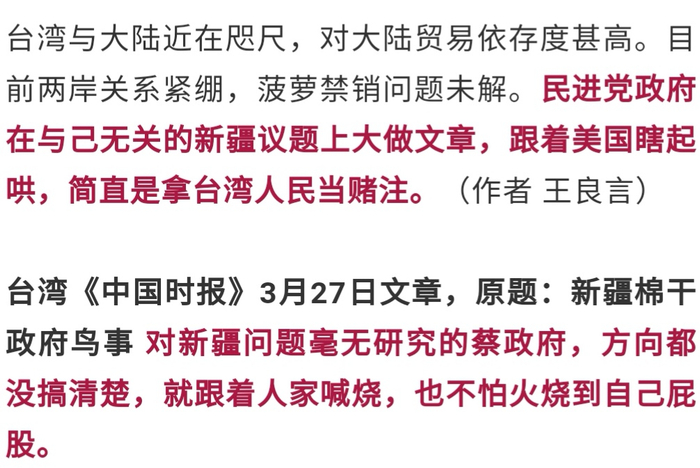 台湾也要跟风“抵制”新疆棉?台媒警告:蔡政府别跟着瞎起哄!